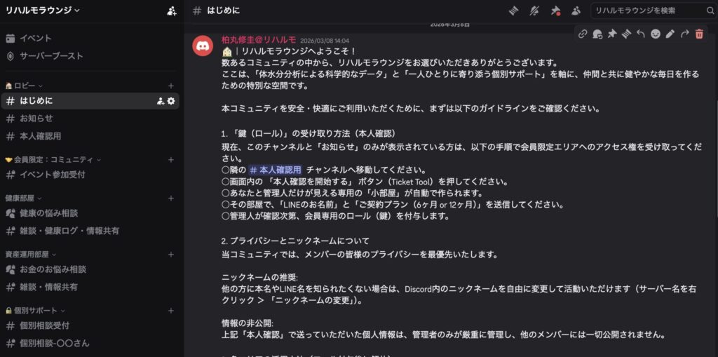 | 6ヶ月プラン | 月1回 × 6ヶ月 | 継続測定、個別相談、コミュニティ参加、イベント無料 | 42,000円 |